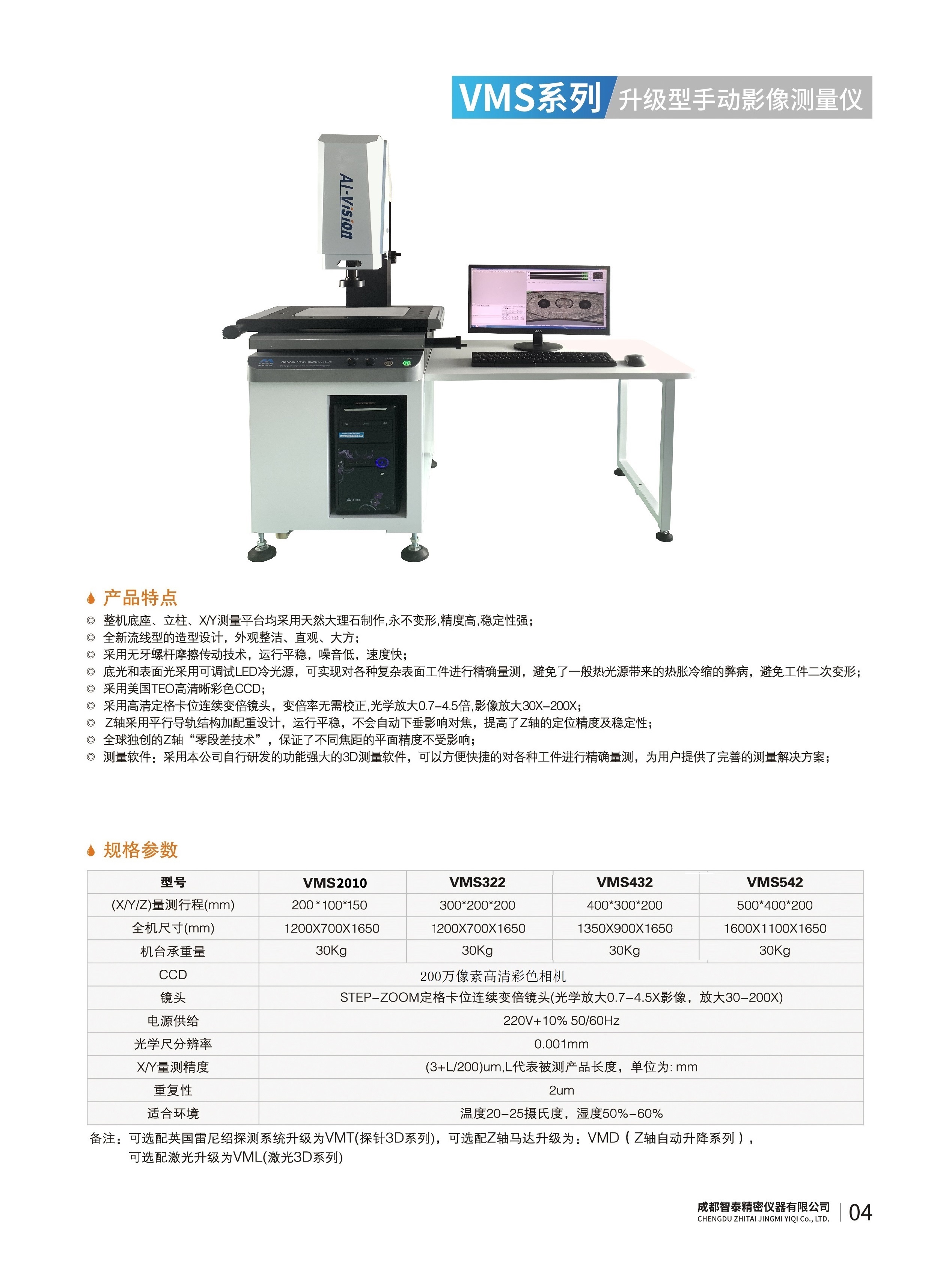 成都智泰精密儀器有限公司專注于精密測量儀器,人工智能,智能制造領(lǐng)域,專業(yè)從事智能視覺自動(dòng)化檢測解決方案的貿(mào)易型企業(yè)。公司成立于2011年,位于天府之國成都,現(xiàn)有行業(yè)精英十余人,辦公倉儲(chǔ)面積200余平米。 公司主要產(chǎn)品為精密光學(xué)影像測量儀,精密輪廓形狀測量儀,精密機(jī)器人定位系統(tǒng),精密智能視覺尺寸檢測儀器,精密表面缺陷智能檢測設(shè)備,工業(yè)工程特種機(jī)器人。 公司憑借過硬的技術(shù)實(shí)力和產(chǎn)品方案,率先進(jìn)入智能視覺自動(dòng)化檢測領(lǐng)域,推廣以精密智能視覺自動(dòng)化檢測為基礎(chǔ)的機(jī)器人自動(dòng)化應(yīng)用,公司不斷整合上下游的資源,擁有巨大的全產(chǎn)業(yè)鏈優(yōu)勢??蛻羧后w覆蓋了我國精密制造業(yè)的多數(shù)領(lǐng)域,包括航空、航天、軍工、汽車、新能源、光伏、食品,精密電子、精密機(jī)械、模具、PCB、LCD、五金、塑膠、醫(yī)療、教育、計(jì)量及科研院所等行業(yè)。 公司創(chuàng)新的產(chǎn)品能滿足生產(chǎn)與制造行業(yè)客戶的要求,訓(xùn)練有素的工程師能及時(shí)提供多種技術(shù)服務(wù),如解...